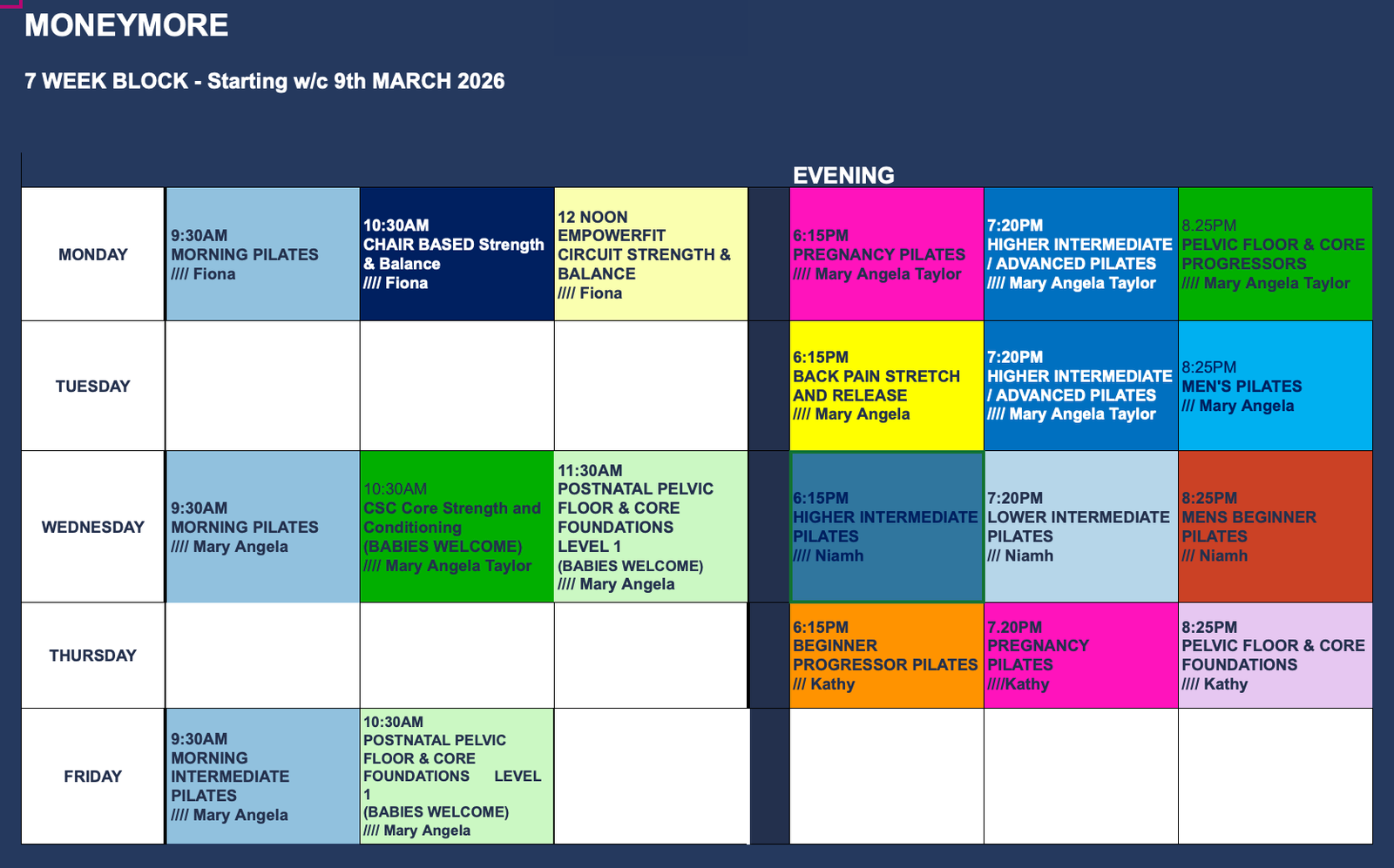 *6 Week Block – No class on Tuesday 17th March*